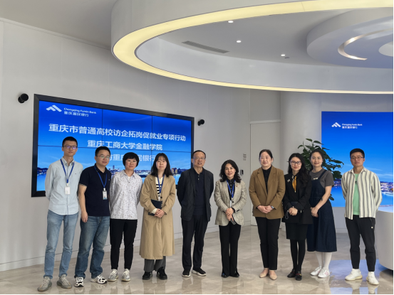 4月27日,bwin必赢(中国)在线登录入口党委书记石世明、院长王兰、学院校友会秘书长杨佳妮、学生第一党支部书记罗勇等到重庆富民银行股份有限公司开展支部联谊暨访企拓岗专项活动,看望慰问我校优秀校友。重庆富民银行股份有限公司副行长钟子民,人力资源总监陈鸣雁,人力资源部副总经理陈倩,人力资源专家石合磊及相关职能部门同志参加调研活动。