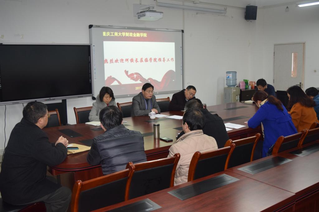 随后,何校长发表了热情洋溢的讲话。他首先对学院工作要点和提出的问题一一作了回应,并强调加强师生思想政治工作。其次,围绕“定位”-“目标”-“任务”-“抓手”同与会骨干教师展开了充分的沟通。其一,依照学校“转型升位”战略和紧跟“双一流”建设,立足西南,面向全国,找准跟踪目标,在新一轮学科评估中建成跟踪目标同样水准;其二,在本科教育中坚持“分流”的思想,必须抓住外语六级过级率、升学率、数学、优质升学率等牛鼻子做好内涵式发展;其三,科研要紧跟市政府建设国内功能性金融中心的步伐,一方面做好“两金”项目,尤其是自然基金软科学和跨学科横向搭建项目,另一方面做好智库团队建设;其四,人才建设要全方位、多思路,用好平台。最后,何校长期许各位同仁:哈起腰,撸起袖子加油干。