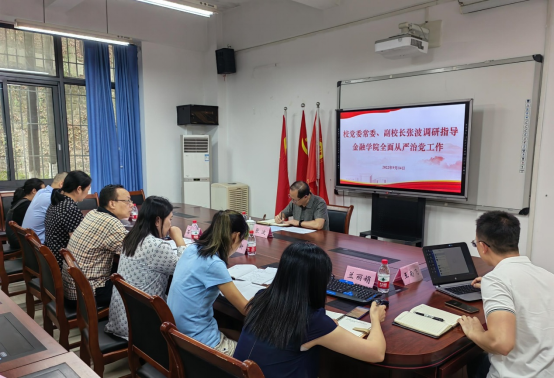 会上,石世明向张波汇报了学院党委2022年下半年全面从严治党工作要点和工作思路。要把全面从严治党摆在首位,以学校巡察整改要求为契机,健全学院制度体系和工作机制;做好“老带新”传帮带、党员发展、“双创支部”建设等工作,要以学院“金融卫士”反诈防骗宣讲为抓手,做好党建与业务相融合工作,要把全面从严治党落实在学院的各项工作中,在新形势下不断探索党建工作和学科建设、专业建设深度融合模式,要不断创新,打造bwin必赢(中国)在线登录入口的特色亮点,形成bwin必赢(中国)在线登录入口党建品牌,引领学院工作高质量发展。