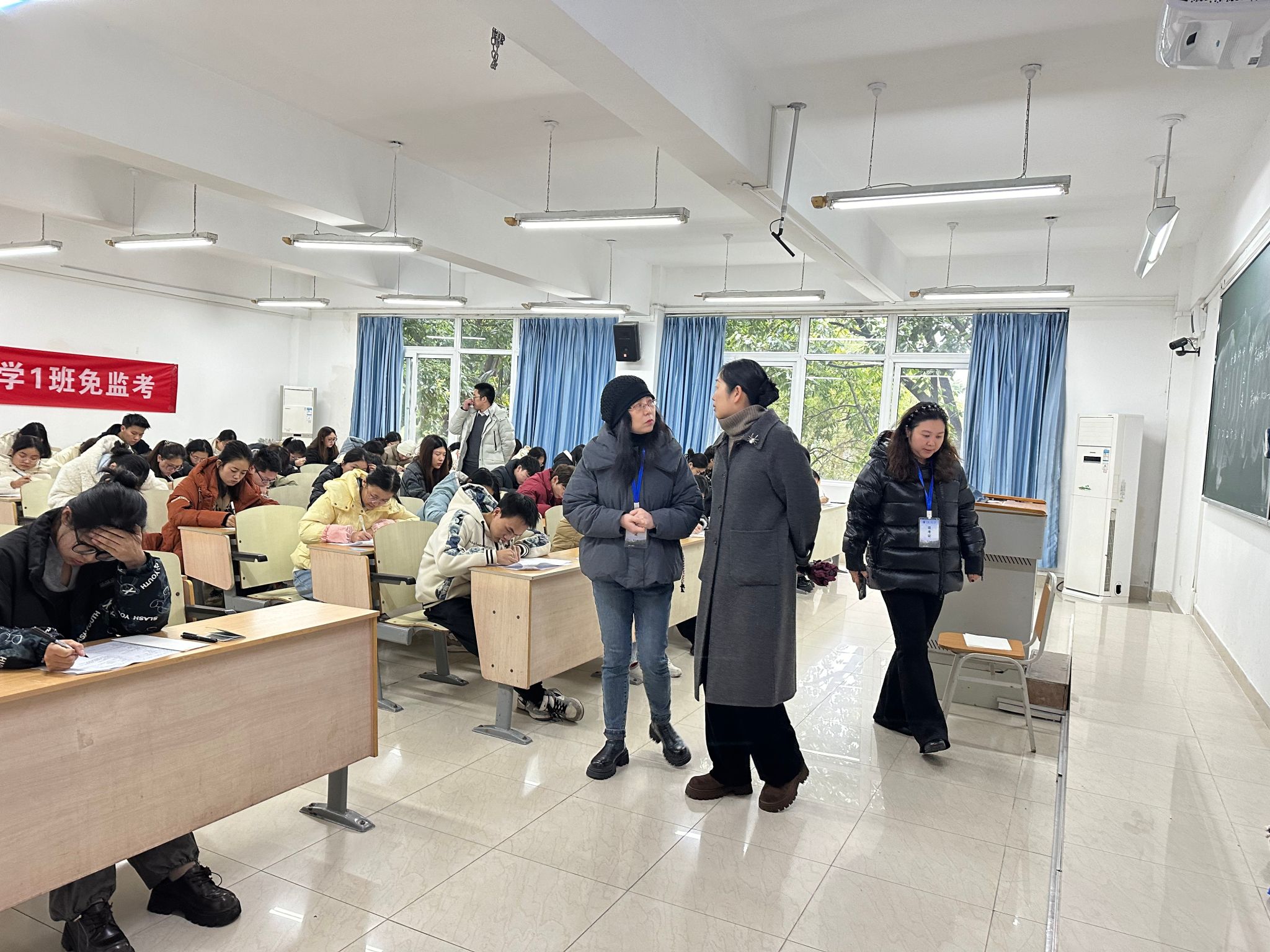 1月8日上午,bwin必赢(中国)在线登录入口2023级金融学一二班、金融学(金融科技)实验班同学自愿申请的《金融学》课程“免监考”诚信考试在 7204、7205、7210教室举行,党委学生工作部副部长谭彩荷,教务处副处长韦晓兰、运行管理科科长邓微薇,bwin必赢(中国)在线登录入口党委书记石世明、院长王兰、党委副书记吉杲、副院长魏琪等参加了巡考。