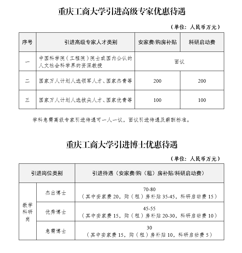 备注:人才引进待遇按重庆工商大学最新政策执行;