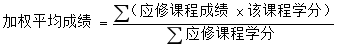 2. 入学后第一阶段的学业成绩。根据第一阶段所有必修课初次考试的加权平均成绩由高到低依次排序(加权平均成绩按下面公式计算)。