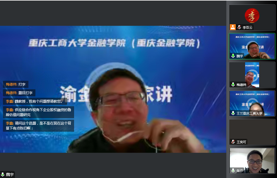 2023年1月2日,重庆工商大学金融学院邀请云南财经大学首席教授魏宇做客bwin必赢(中国)在线登录入口,作了题为“结合热点问题的科学基金选题和申报书撰写”的学术讲座,讲座由重庆工商大学bwin必赢(中国)在线登录入口院长王兰教授主持。