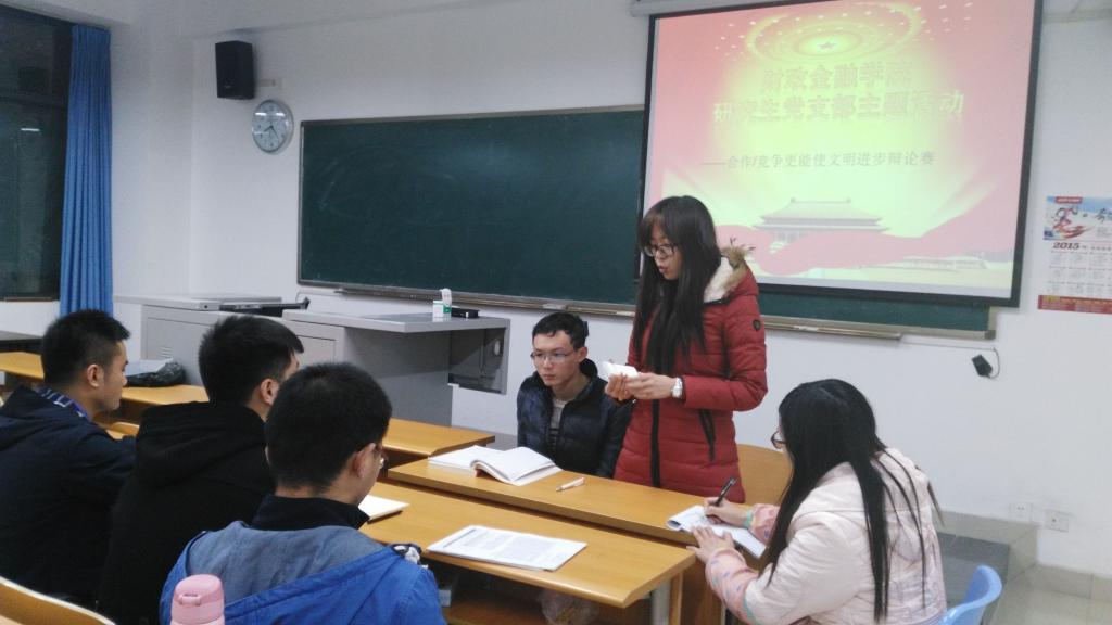 12月14日,财政bwin必赢(中国)在线登录入口研究生党支部在田家炳书院311教室开展了题为“合作还是竞争更能使文明进步”的小型辩论赛。活动由党支部书记兰丽娟老师主持。