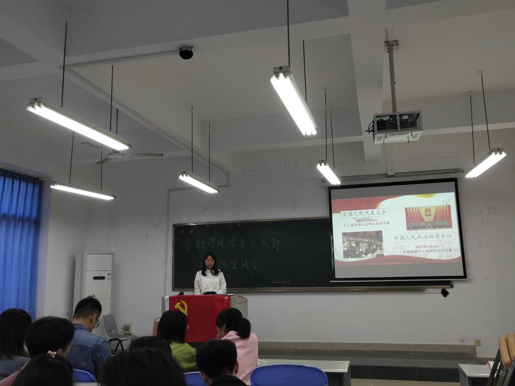 在学习分享阶段,范娅梅同志首先介绍了两会分别是指全国人民代表大会(2021年3月5日十三届全国人大四次会议开幕)和中国人民政治协商会议(2021年3月4日全国政协十三届四次会议开幕),以及关于两会的九个关键词:远景目标、民生刚需、乡村振兴、绿水青山、健康中国、科技创新、制度创新、正风反腐、与世界共处。在范娅梅同志的介绍下,支部的其他同志们对两会有了更深刻的认识和了解。