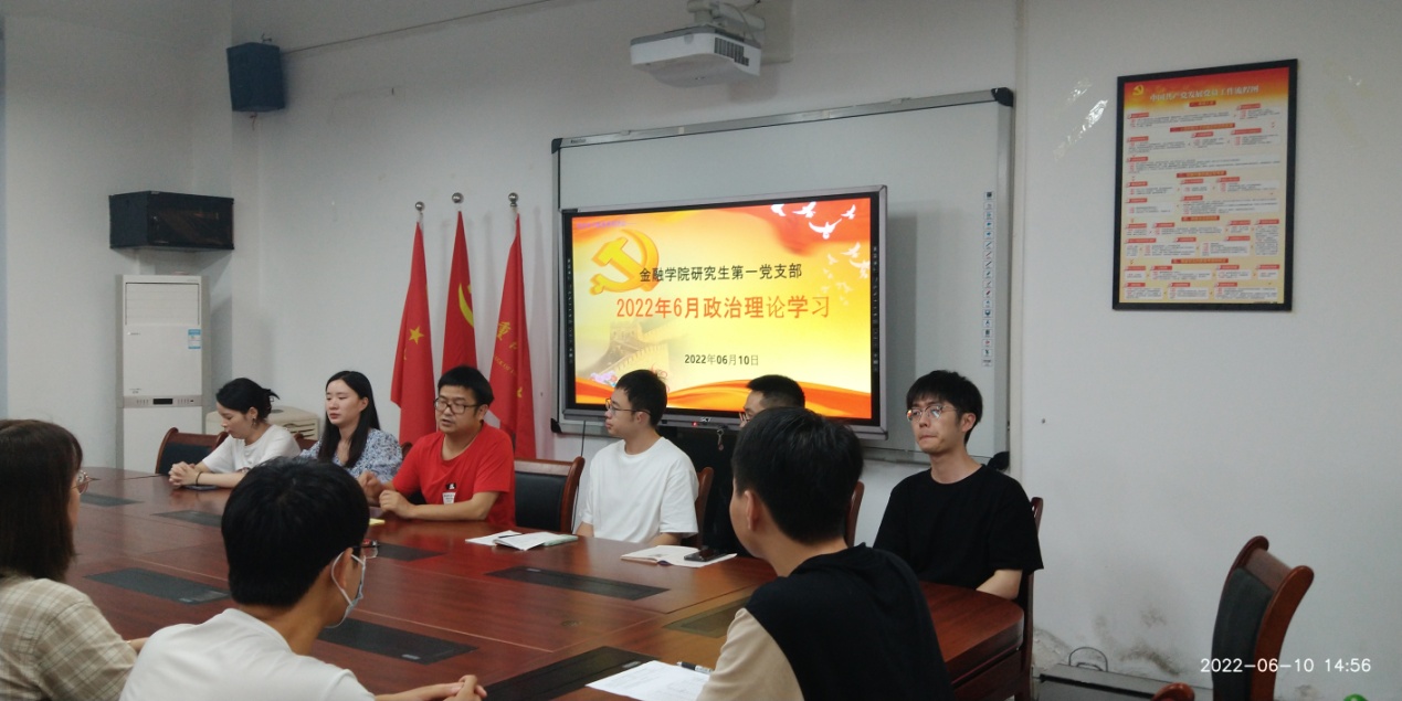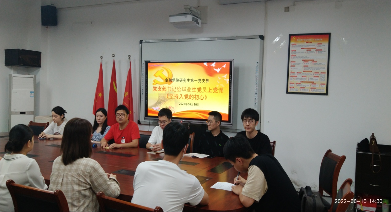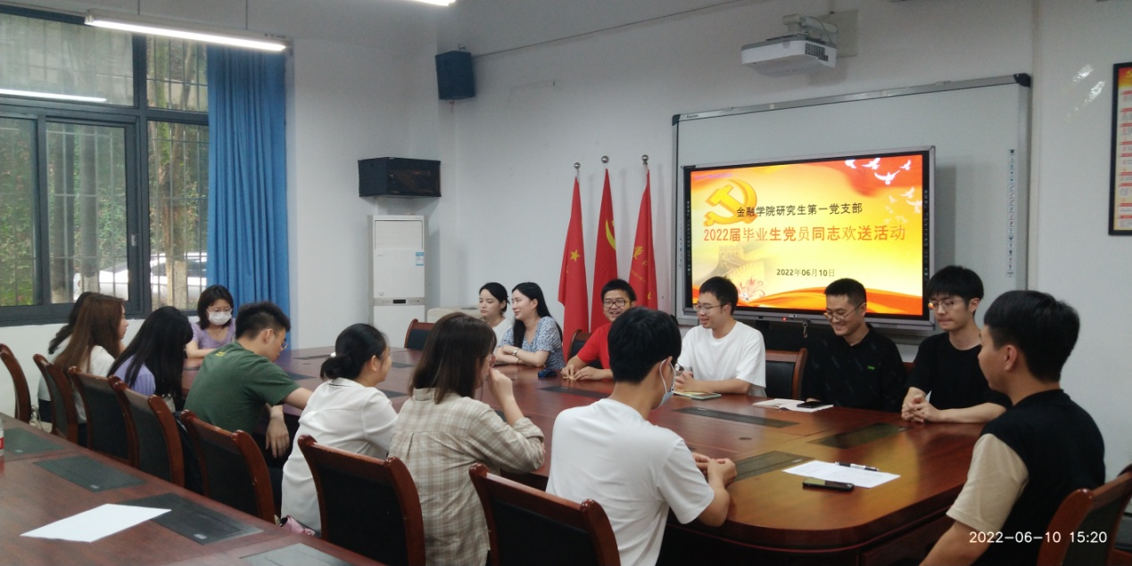 2022年6月10日下午,bwin必赢(中国)在线登录入口研究生一支部开展了毕业生党员同志系列欢送活动。活动内容包括重温入党誓词、支部书记讲党课、毕业心得分享以及在校期间最后一次理论学习。活动由支部书记杨宁同志主持,支部全体党员出席。