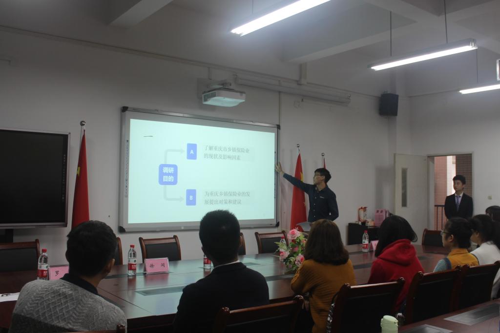 大会开始后,由黄谦书记发表致词,不仅肯定了同学们在社会实践调研中的成果,还对大家在以后的学习与实践中提出了中肯的建议:调研要深入基层,要选取合理的题目,涉及的范围不要太广,宏大的题目单凭几个人是不能够理解透彻的,最好的就是把调研做精做好。而后,优秀调研团队张帮满团队为我们详细讲解了他们团队的调研内容。他们就“保险意识与保险行业在重庆城乡的发展状况”这一问题进行了调研,深入了涪陵等地,通过采样调查等方法构建起自己的一套完整调研体系。最后,主持人揭晓了本次调研活动的获奖团队:张帮满团队荣获一等奖,梁炎兰团队和周万伦团队荣获二等奖,谭海霞团队、朱晓娟团队以及钟亭亭团队荣获三等奖,由出席的各位领导和老师为获奖的优秀团队颁发奖状。