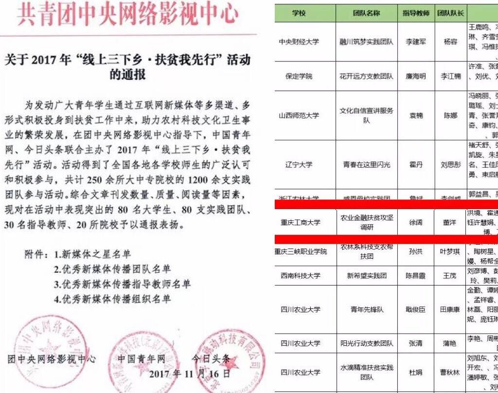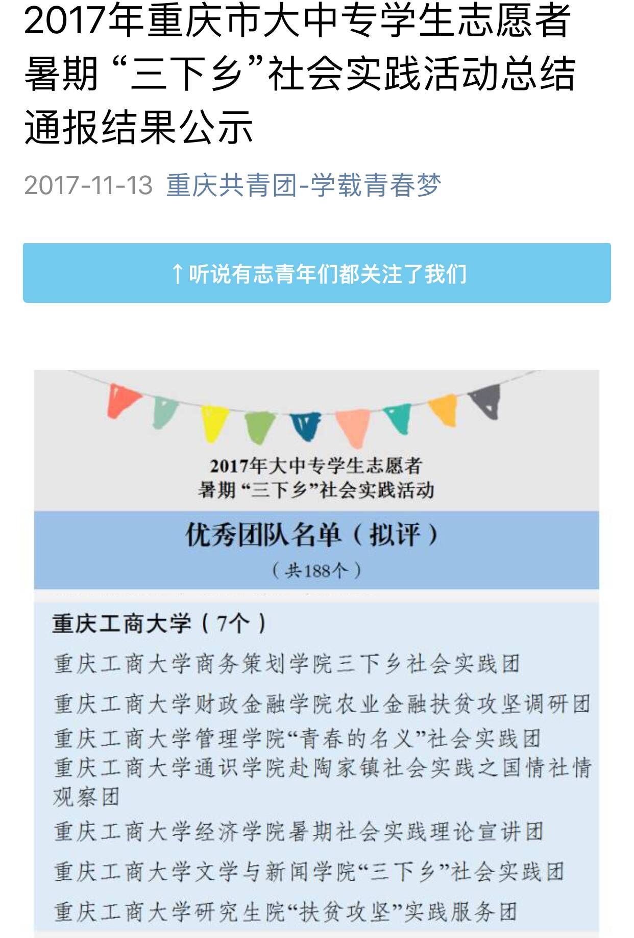 此次暑期三下乡,财政bwin必赢(中国)在线登录入口发挥专业优势,把握时代主脉,组织了农业金融扶贫攻坚调研团,深入涪陵增福乡实地考察扶贫情况,点面结合开展多层次金融知识扶贫服务宣讲,用专业的知识和新的理念助力科技农业新发展。该团队在共青团中央网络影视中心举办的“线上三下乡,扶贫我先行”活动中荣获“优秀新媒体传播团队奖”,同时我院三下乡实践团队还获得重庆市暑期“三下乡”社会实践活动优秀团队以及校级优秀团队,除此之外还获得了校级暑期三下乡社会实践活动先进集体。