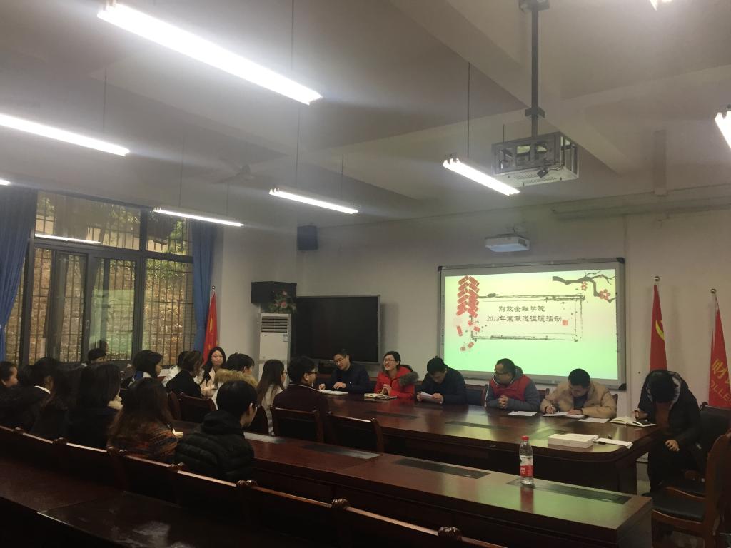 为积极响应学校号召,同时也让家庭经济困难学生在寒假期间感受到学院的温暖,财政bwin必赢(中国)在线登录入口于2018年1月22日在田家炳313会议室,对41名在校留宿的家庭经济困难学生进行慰问活动。财政bwin必赢(中国)在线登录入口分党委副书记黄谦、学团办主任兰丽娟、辅导员文理、余红霞、文理、徐阔、范乐乐参加了本次活动。