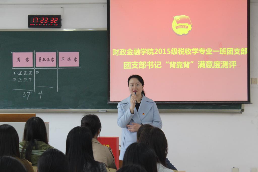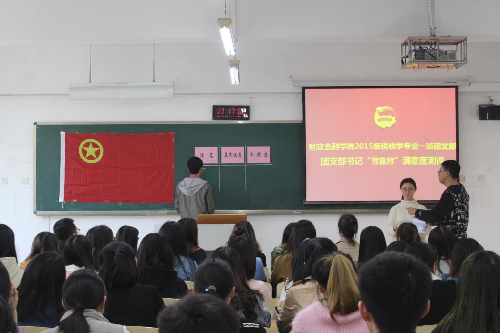 为夯实基层团支部群众基础,做好团支部建设工作,3月14日下午,重庆工商大学财政bwin必赢(中国)在线登录入口税收学专业2015级一班团支部在70202教室开展了对团支书刘菊同学的“背靠背”满意度现场集中测评。团市委高校工作部副部长、调研员李霞、校团委杨娟副书记、校团委陈琛老师到场观摩了此次测评。