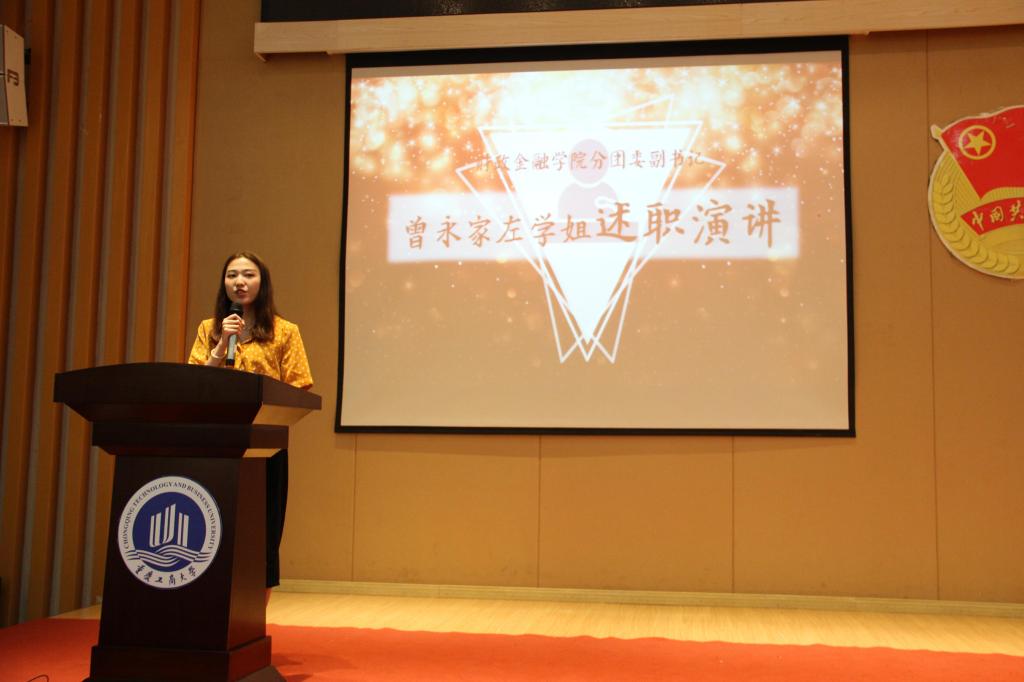 大会伊始,在场的分团委成员通过一段简短而又温馨的视频回顾了过去一年财金学院经历的点点滴滴。视频播放完毕后,财金学院分团委书记徐阔老师上台致辞,徐阔老师简短地总结了一年来的工作,对校运动会等重大活动中学院上下的表现进行表扬,并对财金学院未来的发展表示期待。接下来,财金学院分团委副书记曾永家左进行了述职演讲,一字一句中体现了对财金学院的热爱与对未来的美好展望。