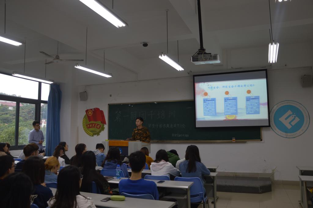 10月18日中午,重庆工商大学财政bwin必赢(中国)在线登录入口在田家炳308教室召开了第八届“财金青马月”系列活动之团干培训。财政bwin必赢(中国)在线登录入口分团委学生会主席团及部长团全体成员参加了本次培训。此次活动旨在增强学生干部的全局意识、服务意识、责任意识,加强学生干部队伍的凝聚力、战斗力,提高学生干部的整体素质,并以此促进学生干部成为学习型、务实型、创新型及自律型为一体的优秀学生干部,从而更好地服务于同学,服务于学院。