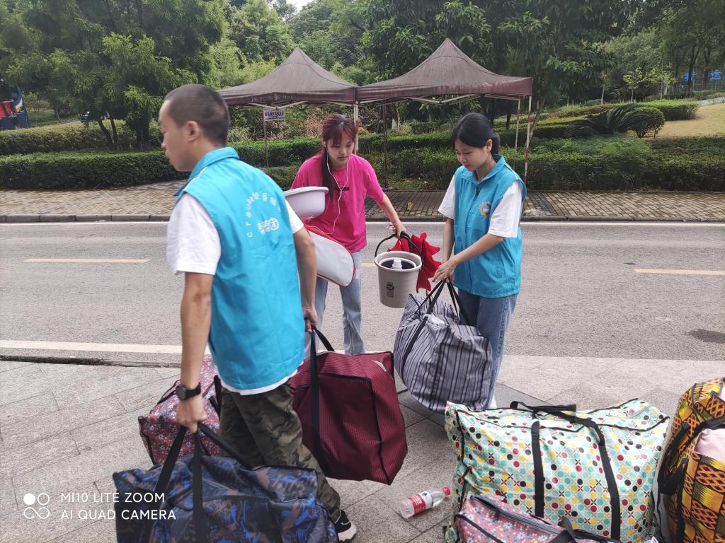 为确保搬迁工作安全、有序、高效完成,学院各辅导员老师携学院党员服务站、学生会志愿者同学分楼栋定点值班,让2019级学生一下车就能感受到学院的温暖。辅导员老师和志愿者们仔细询问每一辆搬迁车辆车次信息,有条不紊地进行物资卸载,帮助同学们搬运物资到寝室,悉心为同学们指路,也力所能及帮助其他学院同学搬迁。