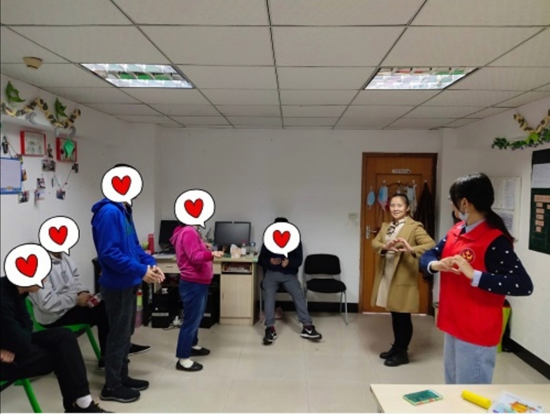 “听我说谢谢你,因为有你,温暖了四季……”11月10日上午,在重庆市南岸区昌龙城市花园慧灵活动中心,来自重庆工商大学bwin必赢(中国)在线登录入口“星火”义工志愿者协会的成员们,利用无课时间陪伴自闭症患者排练《听我说谢谢你》手语操。