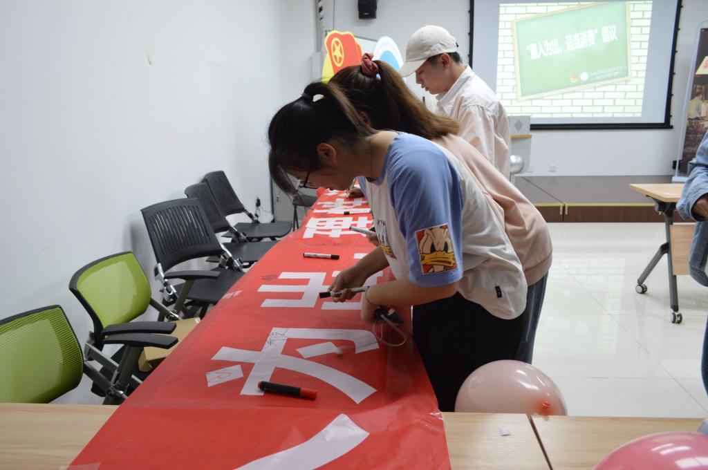 演出期间,主持人通过知识问答、分发问卷的方式向同学们传播消费知识。演出结束后,同学们分享身边发生的案例,提到了二手买卖脱离平台交易被骗、淘宝退款链接被骗、微信QQ被盗要求转钱被骗等。最后,bwin必赢(中国)在线登录入口分团委(学生)副书记田凯玉对活动进行了总结,再次普及金融防诈骗知识,同时倡导同学们量入为出,理性消费。活动结束后,同学们在横幅上签字响应正确消费的号召。