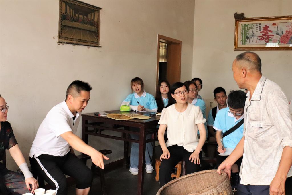 走进毕桥村箩篼湾,实践团细致观察乡村标识的设计、最美庭院的建设以及产业的布局,走家串户,与村民聊发展谈感悟,真切感受到乡村振兴战略在箩篼湾的大力实施和细化落实,村民获得感和幸福感逐步提升。老人们谈到箩篼的发展之路:两百年箩篼传承,六代匠人继承,从挑竹砍竹编竹到成品,都凝聚着工匠精神。针对箩篼湾的未来发展,来自重庆市垫江教师进修学校的乡村振兴工作队刘琼与实践团成员一起从党建、民风民俗、产业兴乡等方面进行了探讨与交流。