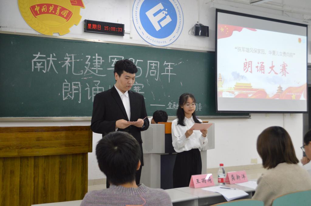 虎踞龙盘今胜昔,天翻地覆慨而慷。为庆祝建军95周年,致敬百万人民解放军战士,2021年10月31日15时,bwin必赢(中国)在线登录入口“铁军雄风保家园,华夏儿女永向前”献礼建军95周年朗诵比赛在博智楼107圆满举行。