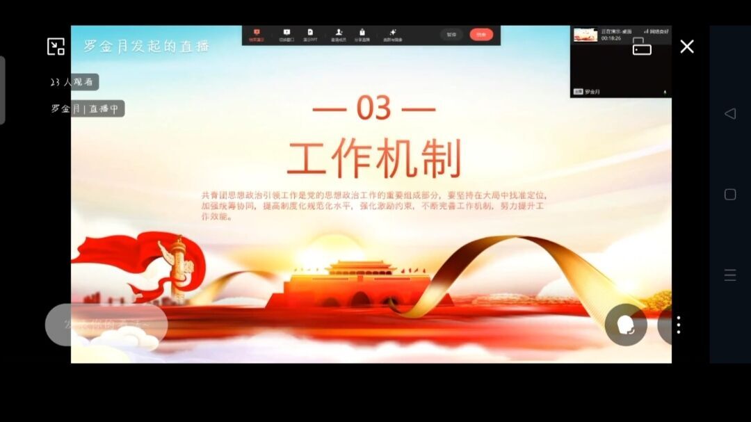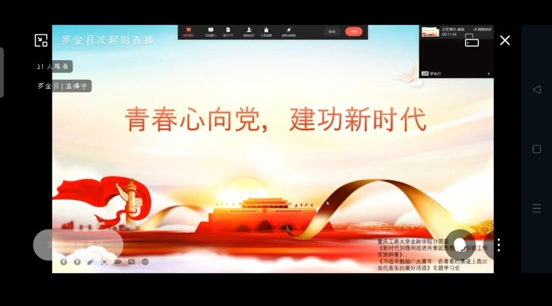 活动在庆祝中国共青团成立100周年主题宣传片《共青春》主题曲《有我》的青春问答中拉开,同学们在细腻而又气势磅礴的旋律中感受一代代不负时代重托的中国青年模样。随后,bwin必赢(中国)在线登录入口分团委组织部部门负责人罗金月领学,内容涵盖团中央发布的《新时代加强和改进共青团思想政治引领工作实施纲要》及习近平总书记在中国人民大学考察时的重要讲话精神。她对《新时代加强和改进共青团思想政治引领工作实施纲要》中主要项目、基本方法、工作机制的具体规定进行详细讲解,在讲到开展劳动教育板块,号召同学们以五月“劳动月”为契机,积极投入到志愿服务、专业实践、社会调研等活动,把养成劳动习惯、强化劳动情感、掌握劳动技能结合起来,传播“崇尚劳动、热爱劳动、辛勤劳动”的道德风尚。在分享习近平总书记在中国人民大学考察时的重要讲话精神时,同学们纷纷表示备受鼓舞,深受感染,将牢记嘱托,“不负韶华,不负时代,不负人民,在青春的赛道上奋力奔跑,争取跑出当代青年的最好成绩”!