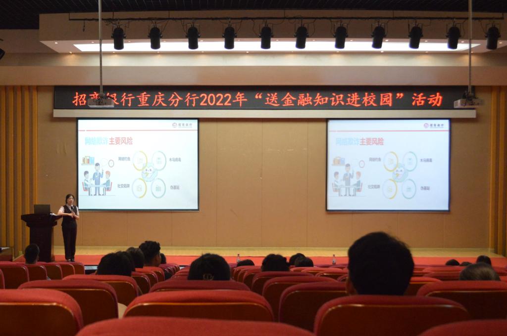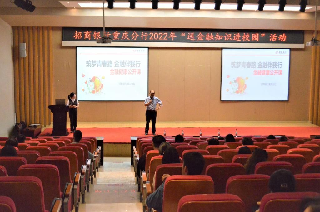 为普及金融知识,提升大学生金融风险防范意识和金融安全意识,2022年6月17日上午10:30,bwin必赢(中国)在线登录入口携手招商银行重庆分行在田家炳209报告厅开展2022年“送金融知识进校园”活动。招商银行南岸学府支行主管徐艾、招商银行重庆分行人力资源部李馨怡分别开展宣讲。bwin必赢(中国)在线登录入口党委书记、副院长王建明出席了活动。