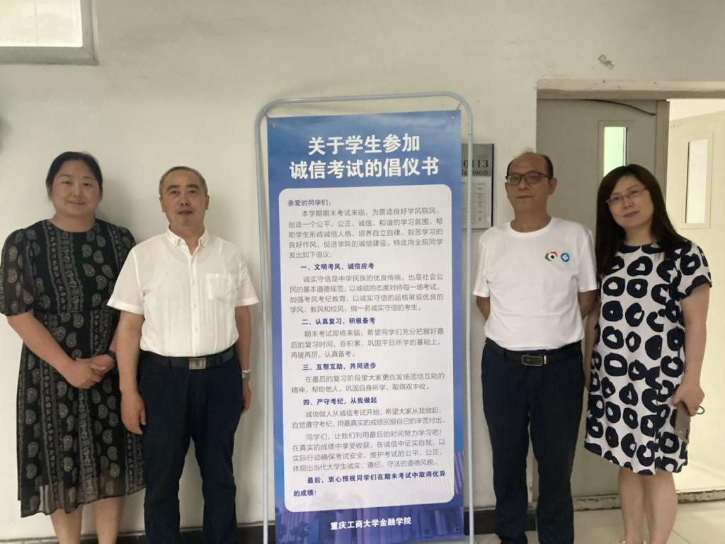 2022年6月23日下午,bwin必赢(中国)在线登录入口在兰花湖校区20113教室开展第四届“免监考”诚信考试,持续推动考试思政,营造优良学风和诚信考风。参加本次“免监考”的班级为21CFA1班,考试科目为《金融学》。教务处处长骆东奇、副处长韦晓兰,bwin必赢(中国)在线登录入口党委书记、副院长王建明,党委副书记、院长王兰,党委副书记、纪委书记余新到场巡考。