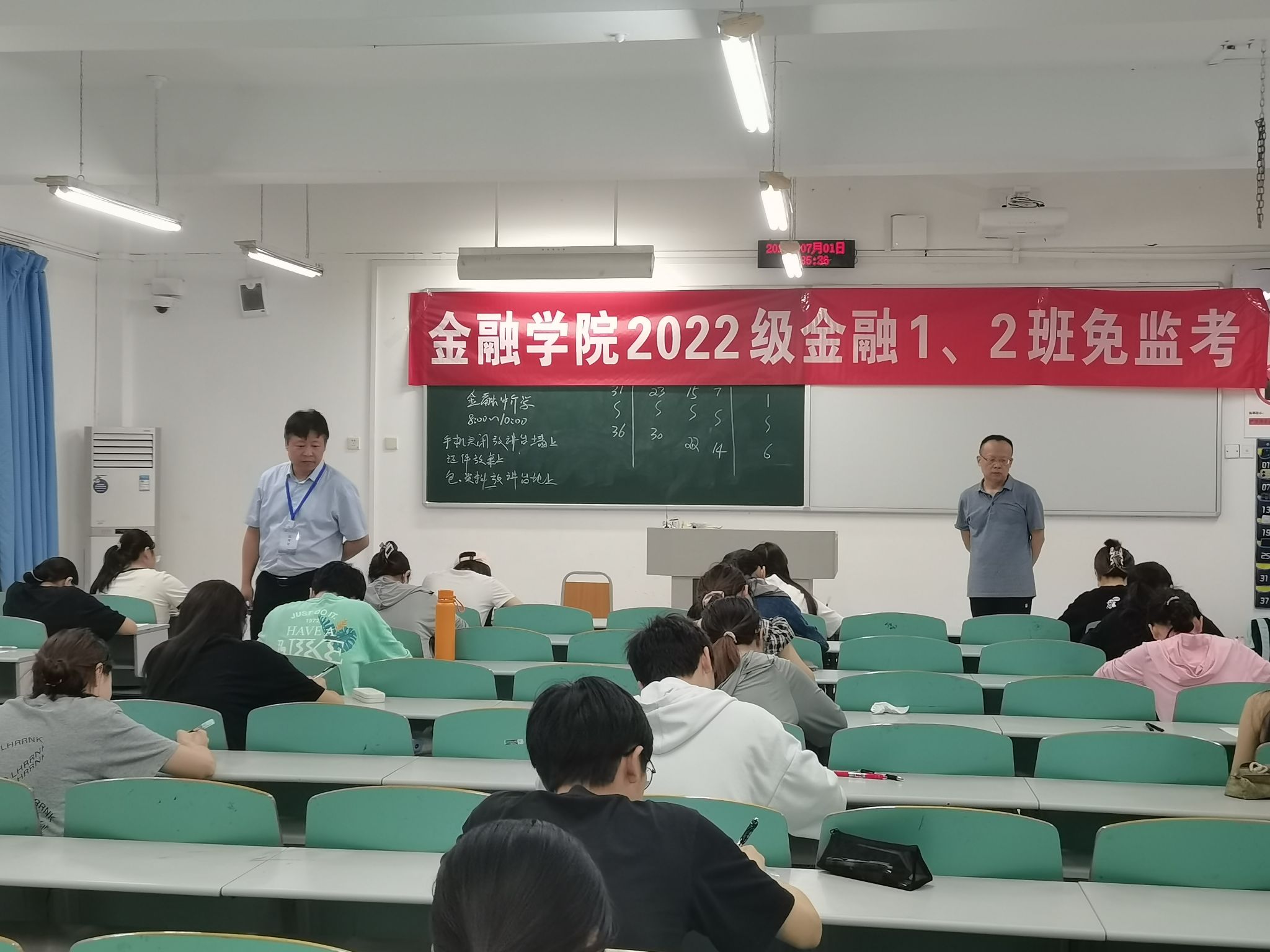 为培养具有“新儒商”精神的新时代大学生,践行“诚信做人,从诚信考试开始”的誓言,2024年7月1日bwin必赢(中国)在线登录入口2022级金融学专业一二班学生自愿申请的《金融中介学》课程“免监考”诚信考试在07104和07105教室成功举行。教务处杨柏处长、韦晓兰副处长和bwin必赢(中国)在线登录入口党委书记石世明、副书记余新、副院长魏琪等参加了巡考。