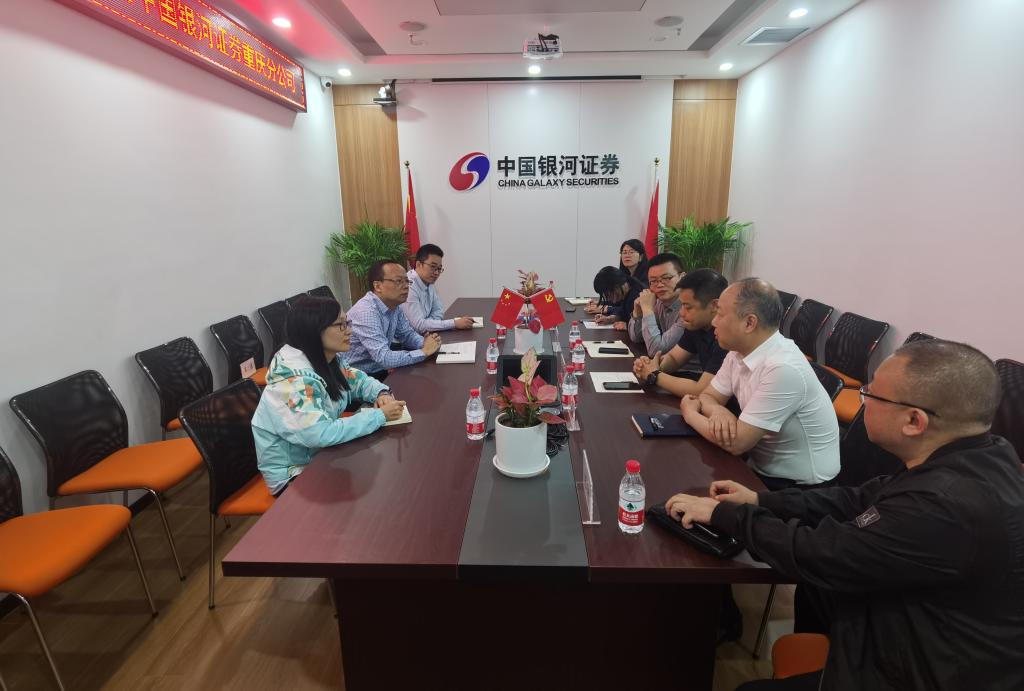 为深入开展学习贯彻习近平新时代中国特色社会主义思想主题教育,5月8日上午,bwin必赢(中国)在线登录入口党委书记、副院长石世明,副院长魏琪,学工办主任、分团委书记兰丽娟等一行前往中国银河证券重庆分公司开展调查研究暨访企拓岗专项行动,探索校企深度融合新模式。中国银河证券重庆分公司党总支书记总经理周明、重庆分公司综合运营部负责人聂云、重庆民族路营业部总经理严华侨、重庆江北嘴营业部总经理王源媛、重庆分公司机构业务部负责人王楠煜、重庆万象城营业部市场营销部负责人刘珂及重庆江北嘴营业部客户经理高路涵等出席了交流会。