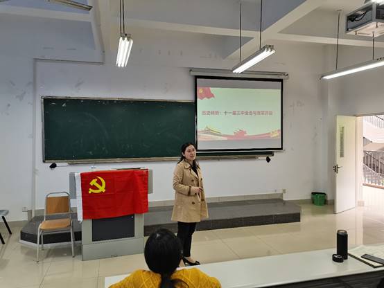 4月23日下午,副校长柏群在田家炳306教室为bwin必赢(中国)在线登录入口师生党员讲授题为《历史转折:十一届三中全会与改革开放》的党史学习教育专题党课。bwin必赢(中国)在线登录入口党委书记王建明、党委副书记余新、副院长庞楷、专职组织员赵甫刚、支部书记、行政人员和学生党员共计80余人参加了学习。会议由王建明主持。