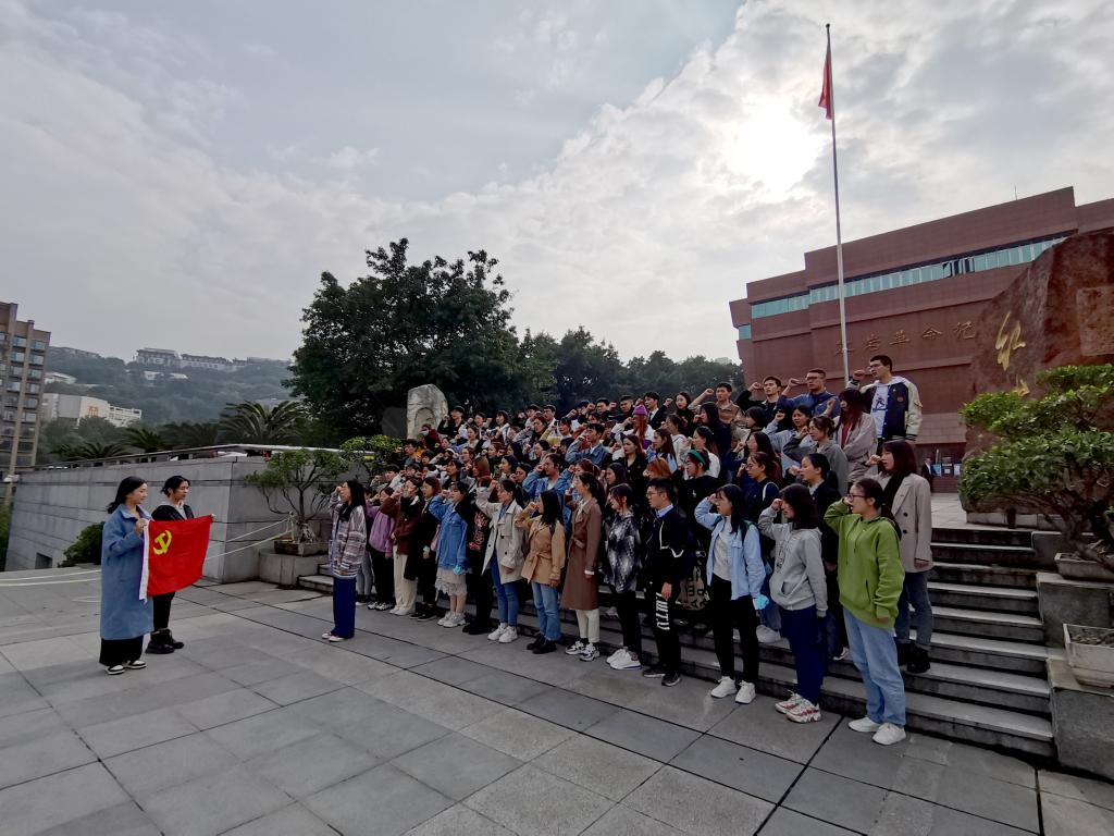 为了深入贯彻习近平总书记“七一”重要讲话精神,扎实开展党史教育学习活动,2021年10月29日下午,bwin必赢(中国)在线登录入口党委组织新发展的80名学生党员到红岩革命纪念馆开展主题为“传承红岩精神、走好新的征程”的党性教育实践锤炼活动。活动由bwin必赢(中国)在线登录入口学生一支部书记袁霄、学生三支部书记张燕带队。
