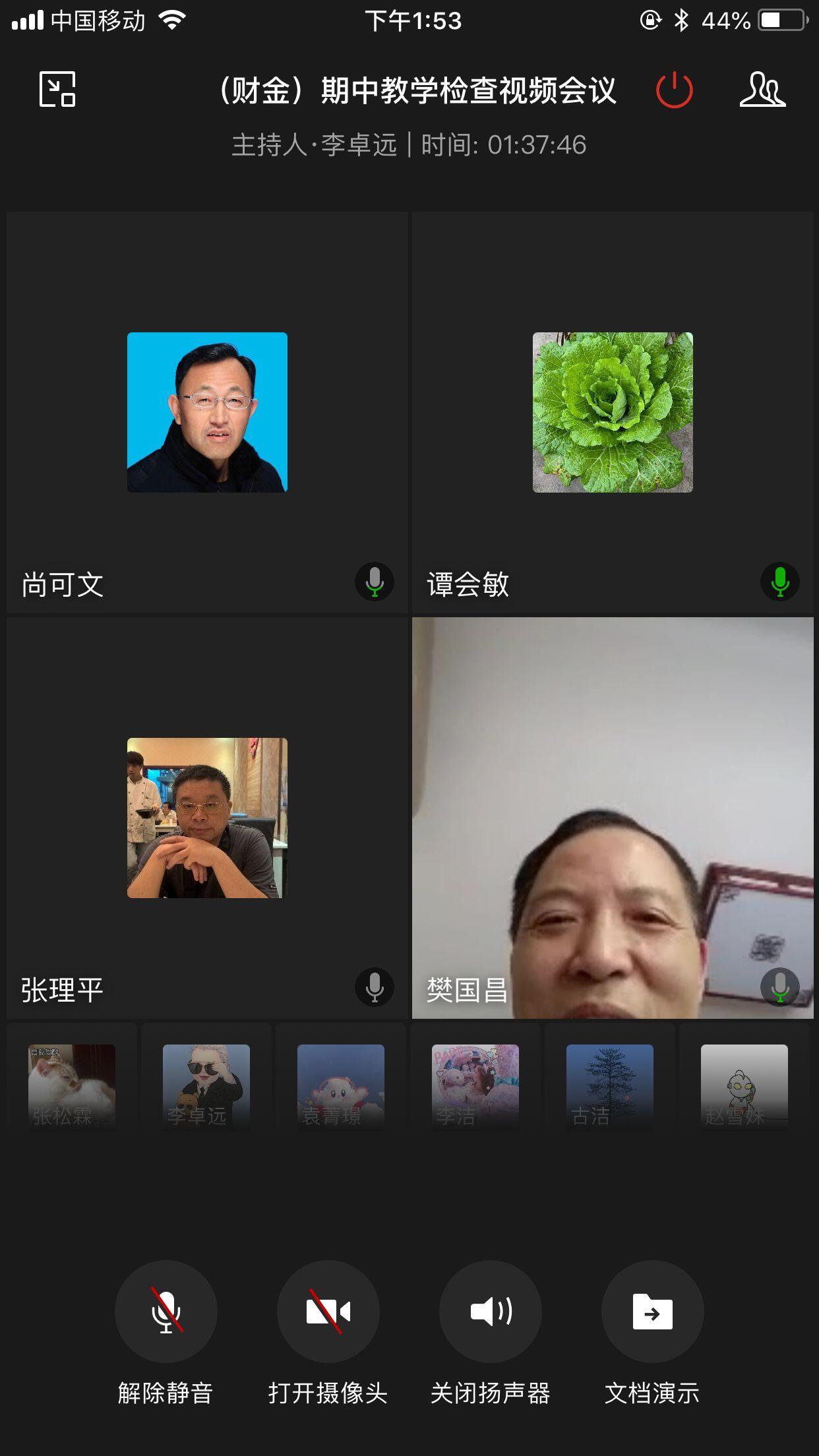 2020年4月29日,财政bwin必赢(中国)在线登录入口召开期中教学检查视频会议。会议由财政bwin必赢(中国)在线登录入口校级督导保险学系樊国昌教授主持。学院教学院长王兰教授、院级督导、各系主任和学院教学管理老师,2017级、2018级各班以及2019级CFA专业的学习委员参加了此次视频会议。