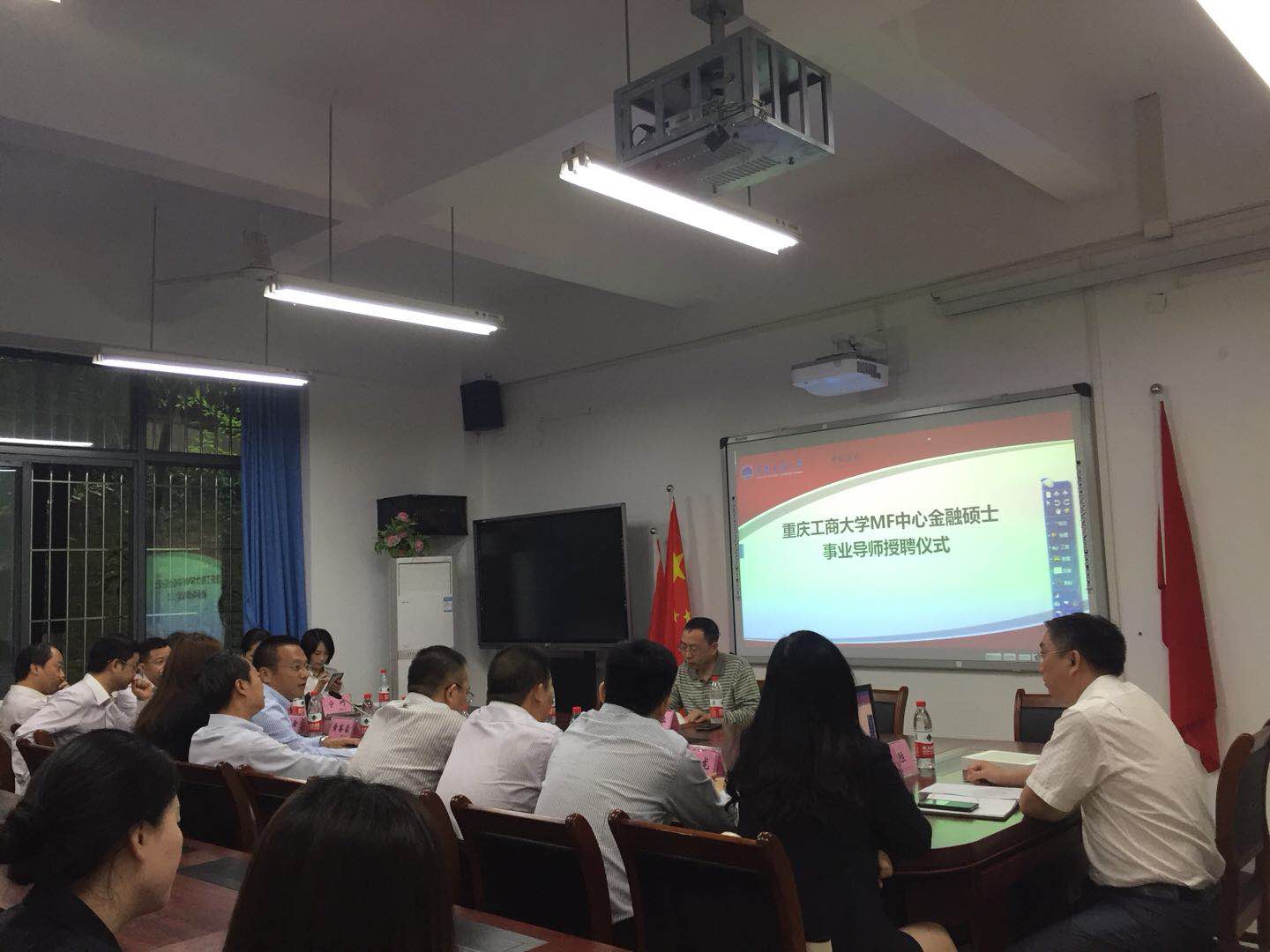 5月25日上午10点,财政bwin必赢(中国)在线登录入口MF中心与中国银行重庆分行在田家炳书院313顺利举行金融硕士新增事业导师受聘仪式。参加本次受聘仪式的人员有:中国银行重庆市分行刘先其副行长、中国银行重庆市分行金融部高海生总经理、中国银行重庆市分行人力资源部杨清军总经理、中国银行重庆市分行人力资源部宁巧副总经理、中国银行重庆市分行8位事业导师、财政bwin必赢(中国)在线登录入口刁孝华院长、曾胜副院长以及2017级金融专硕部分学生代表。