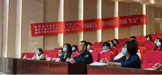 金融卫士防诈骗,服务师生促双创。为发挥党建引领作用,推进党建双创工作,将“党建+双创工作”模式有机融入到“金融卫士反诈防骗”系列活动中,提升支部党员服务师生的活力与能力。2022年10月28日,重庆工商大学bwin必赢(中国)在线登录入口学生第二党支部联合南岸区公安分局四公里派出所和重庆工商大学党委保卫部(保卫处)在重庆工商大学南岸校区田家炳209室成功举行“争当金融卫士,共建平安校园”反诈防骗“线上线下”培训会。本次培训会也是重庆工商大学bwin必赢(中国)在线登录入口党委、重庆市公安局南岸区公安分局四公里派出所党支部和重庆工商大学机关党委第七支部(党委保卫部、保卫处)三方党建共建的开始。