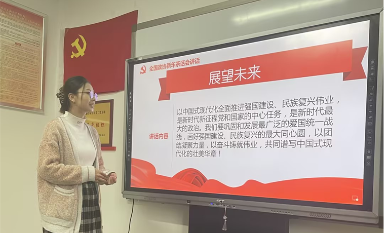 本次组织生活会由曹文焕同志领学,会上,曹文焕同志从“回望过去”和“展望未来”两个方面讲述了习近平在全国政协新年茶话会上的讲话。2023 年是全面贯彻中共二十大精神的开局之年。这一年我们在化危机、闯难关、应变局中创造了新机遇、赢得了战略主动,极大地增强了信心和底气。2024 年是新中国成立 75 周年,是实现“十四五”规划目标任务的关键一年。我们要巩固和发展最广泛的爱国统一战线,画好强国建设、民族复兴的最大同心圆,以团结凝聚力量,以奋斗铸就伟业,共同谱写中国式现代化的壮美华章!